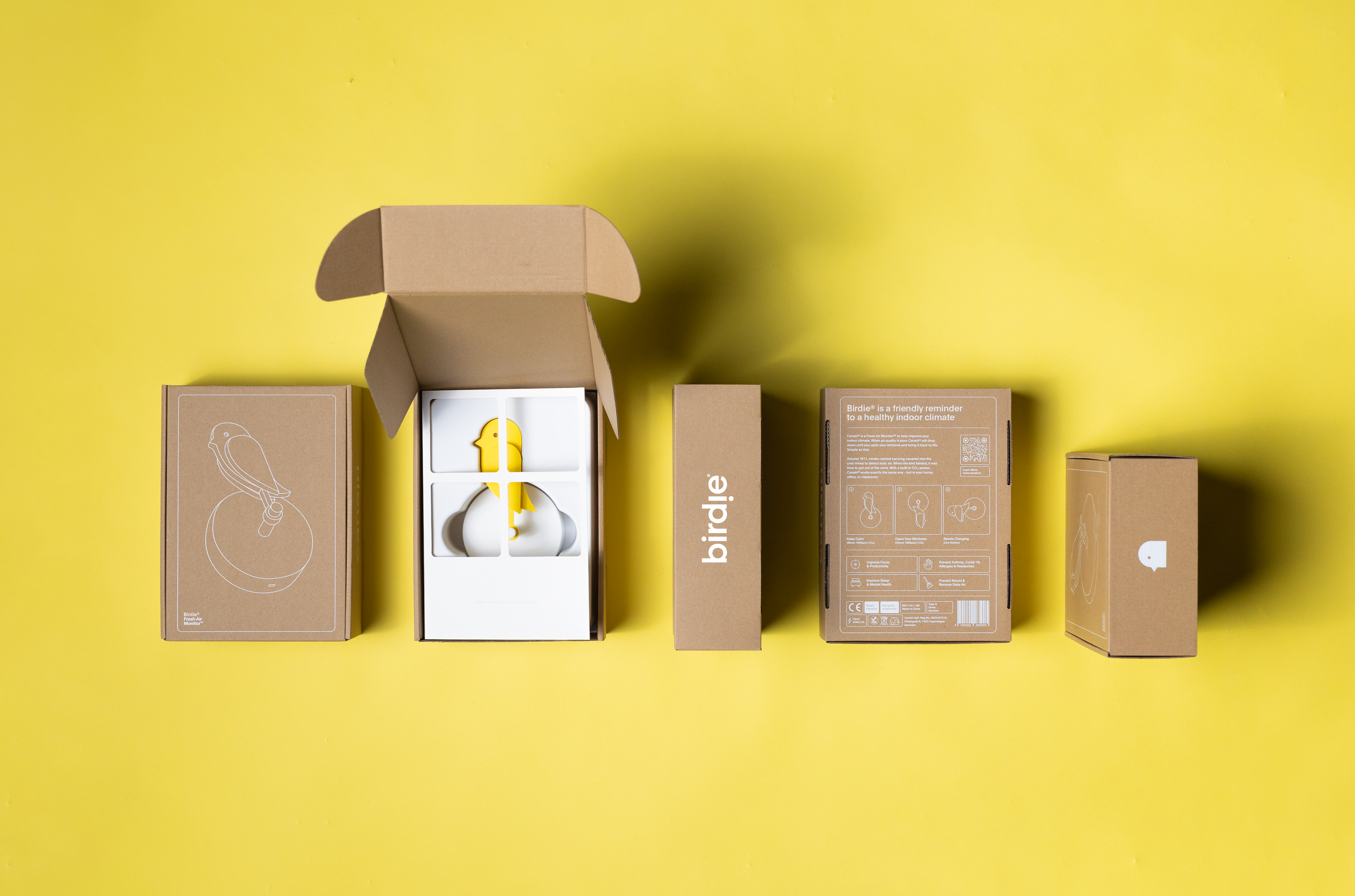 - Ingen forstyrrelser: Birdie® er enkel og effektiv i sit design uden behov for apps, lys eller lyde. Den falder ned, når CO2-niveauet bliver for højt, og rejser sig igen, når luftkvaliteten forbedres, hvilket gør det nemt at se, hvornår det er tid til at lufte ud.